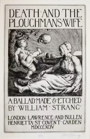 Eines v. 1000 num. Ex. der "India Proof Edition". - Tls. schwach gebräunt. - ╔Dabei: Strang,W.╗ Death and the Ploughmans Wife. A ballad made and etched. London, Lawrence & Bullen 1894. Fol. Mit rad. Titel u. 11 Tafeln (je sign.). Ohldr. mit goldgepr. Deckeltit. (Best. u. berieb.). - Eines v. 110 num. Ex. - Tls. schwach gebräunt. - Zus. 2 Bde.