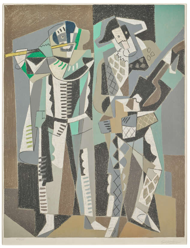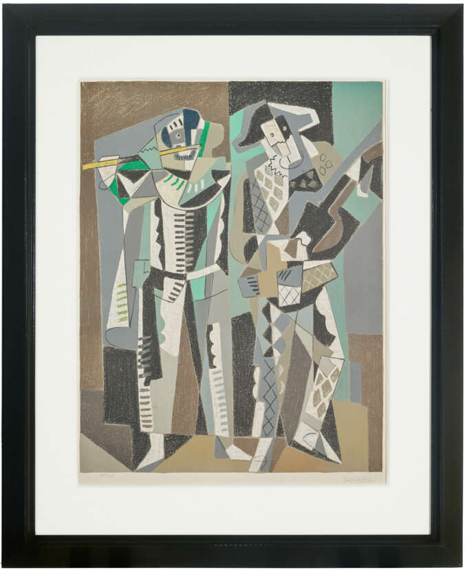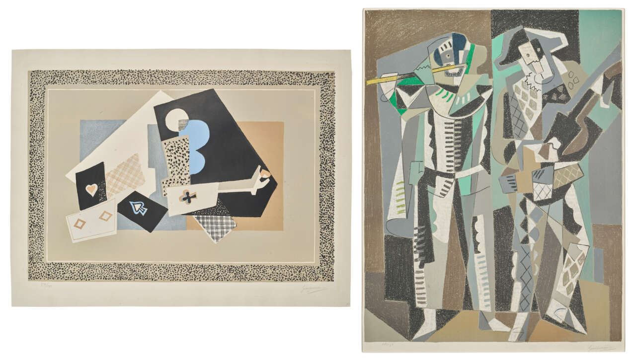 Including: Nature morte, lithograph in colors, on Rives BFK paper, 1958, signed in pencil, numbered 54/140, published by L'Oeuvre Gravée, Zurich; together with Comedia dell'arte, lithograph in colors, on Arches paper, 1958, signed in pencil, numbered 101/140, published by L'Oeuvre Gravée, Zurich, with their blindstamp, with margins, each in generally compromised condition, framed