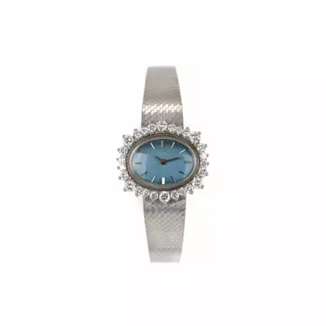 Switzerland, circa 1960s, manual winding, 750 white gold case, hallmarked, bezel set with 26 brilliant-cut diamonds, total approx. 1.44 ct, diameter 25 mm, original Milanese bracelet, 750 white gold, original clasp, 750 white gold, hallmarked, length 16.5 cm, weight approx. 35 g, function tested, running, condition good, but scratch mark on the glass, without original box or papers