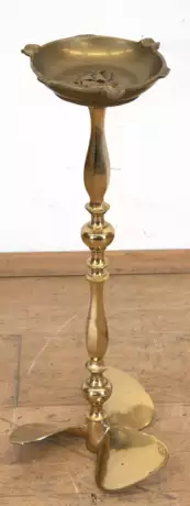 Lot 1007 | Großer maritimer Standaschenbecher, Messing, Fuß in Form einer Schiffsschraube, Aschenbecher mit 3 Ablagen mit Koggenrelief, H. 62 cm