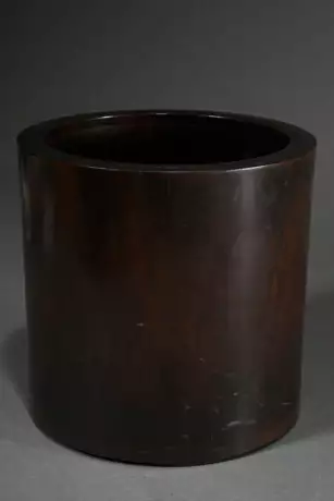 Large Zitan wood (Pterocarpus cf. santalinus) brush cup in simple style on 3 implied feet, China, Qing dynasty, H. 23.5 cm, Ø 24 cm, 3.9 kg
