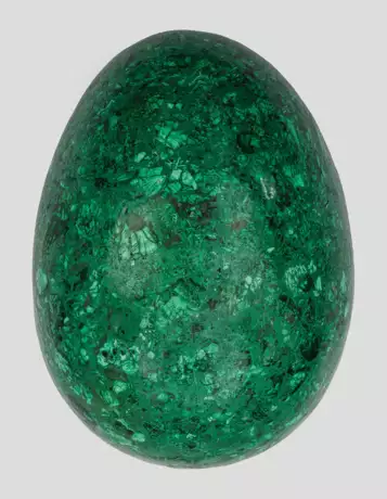 Flächendeckender Fond aus fein gemasertem Malachit. Best.; rest. H. 38 cm.