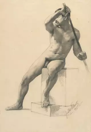 Lot 506 | Gustav Klimt. Seated male nude with staff
