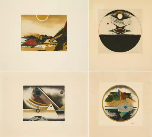 Each: Untitled. Colour etching on laid paper. Varying depiction measurements. Sheet