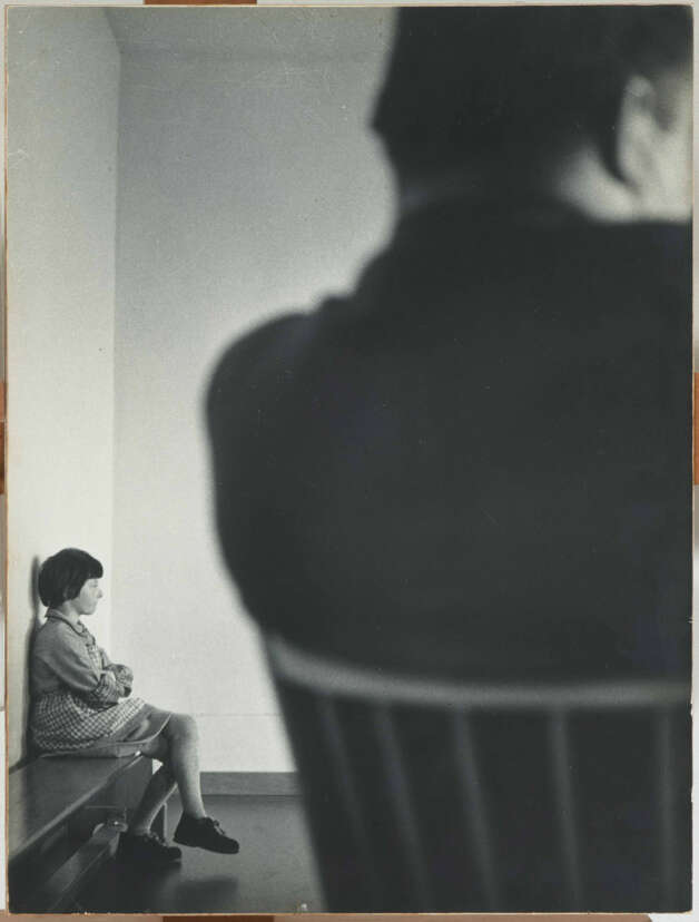 Wartezimmer der Sprachheilschule St. Gallen. S/W-Fotographie auf Pavatexplatte aufgezogen. Verso in Filzstift signiert und mit Stempel: "Copyright Photo Hans Baumgartner Steckborn Schweiz ... Negativ-Nr." und in Bleistift: "1639-3". Blattgrösse 40x30,5 cm. Ohne Rahmen.