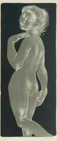 Mädchen mit erhobenem Arm. 1956. Lithographie. 37/95. Unten rechts in Bleistift signiert. Lichtmass 90x37 cm. Gerahmt.