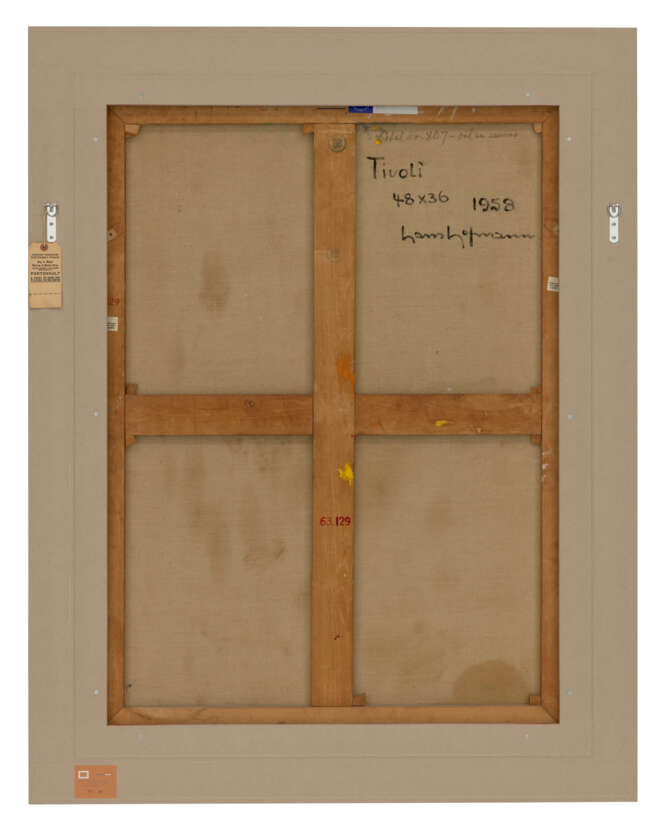 signed and dated '58 hans hofmann' (lower right); signed again, titled and dated again 'Tivoli 1958 hans hofmann' (on the reverse)