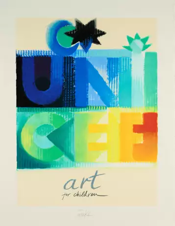 From the portfolio 'Meine Kindheit - Schmerz und Heilung', published by Thomapyrin Schmerztabletten and BUNTE to support the UNICEF-Programme for traumatised children in Rwanda. The portfolio originally contained 10 prints from the artists Georg Baselitz, Sandro Chia, Jörg Immendorf, Markus Lüpertz, Heinz Mack, A.R. Penck, Antoni Tàpies, Rosemarie Trockel and Tom Wesselmann.