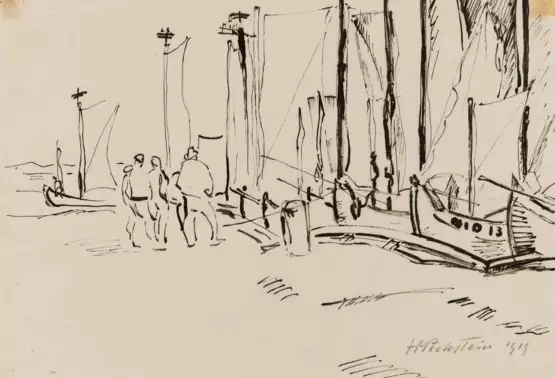 Lot 176 | Hermann Max Pechstein. Fischer und Segelboot am Hafen (Nidden)
