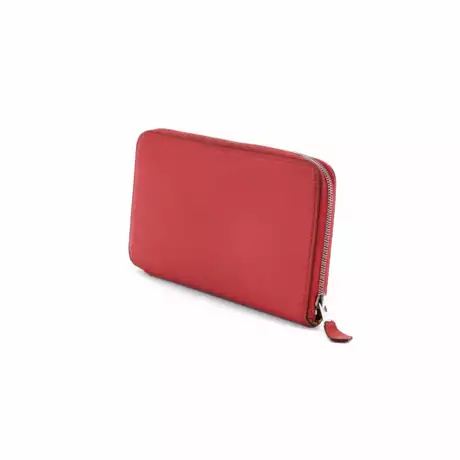 Description: Wallet with blue and white silk twill lining. 12 card slots, 4 flat compartments, coin