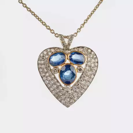 Lot 163 | Herzförmiger Saphir Brillant Anhänger mit Kette.