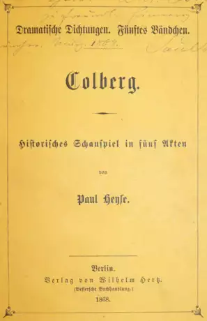 (= Dramatische Dichtungen, Bd. 5). - Mit ╔eh. Verf.-Widm.╗ u. Unterschr. auf OU (an seinen "verehrten Freund L.A. Jordan", dat. 1868) sowie beiliegendem ╔eh. Brief Heyses╗ mit Unterschr. 1868 (1 S.). - Paul Heyse erhielt 1910 den Nobelpreis für Literatur.