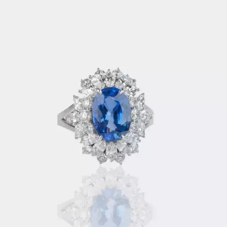 Lot 145 | Hochfeiner natürlicher Saphir Ring mit Diamant-Besatz.