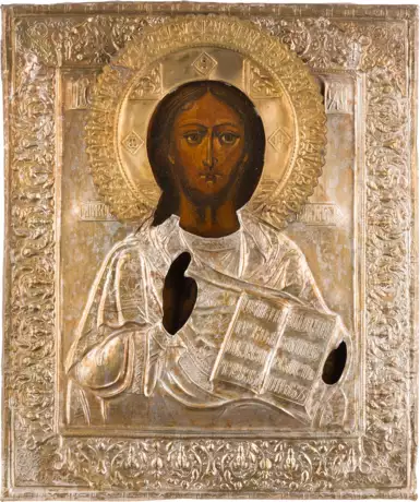 Lot 978 | AN ICON SHOWING CHRIST PANTOKRATOR WITH OKLAD