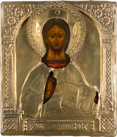 Lot 990 | AN ICON SHOWING CHRIST PANTOKRATOR WITH OKLAD