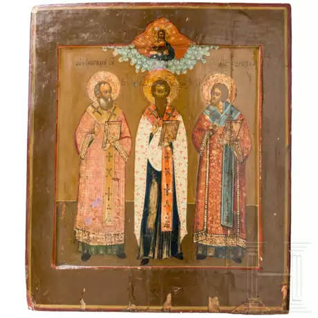 Lot 7645 | Ikone mit den drei Kirchenvätern, Russland, 19. Jhdt.
