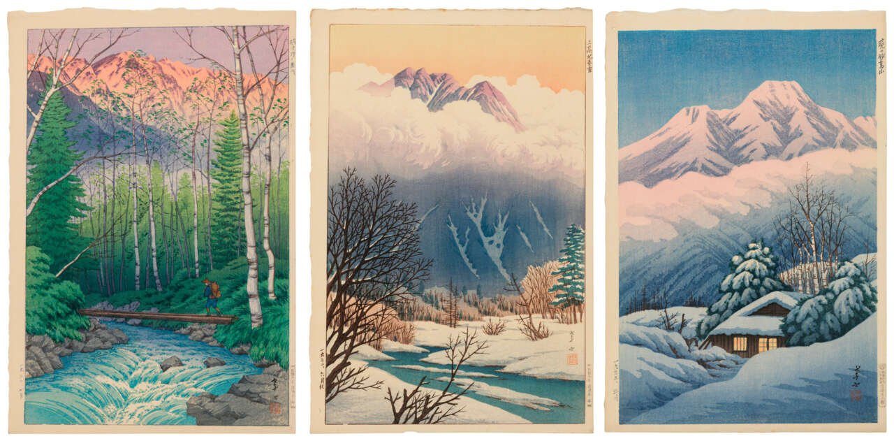 1) Kamikochi shunsetsu (Spring snow at Kamikochi), dated June 1932