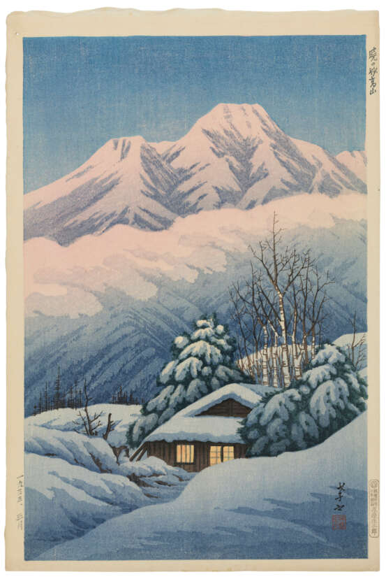 3) Akatsuki no Myokozan (Mount Myoko at dawn), dated March 1933