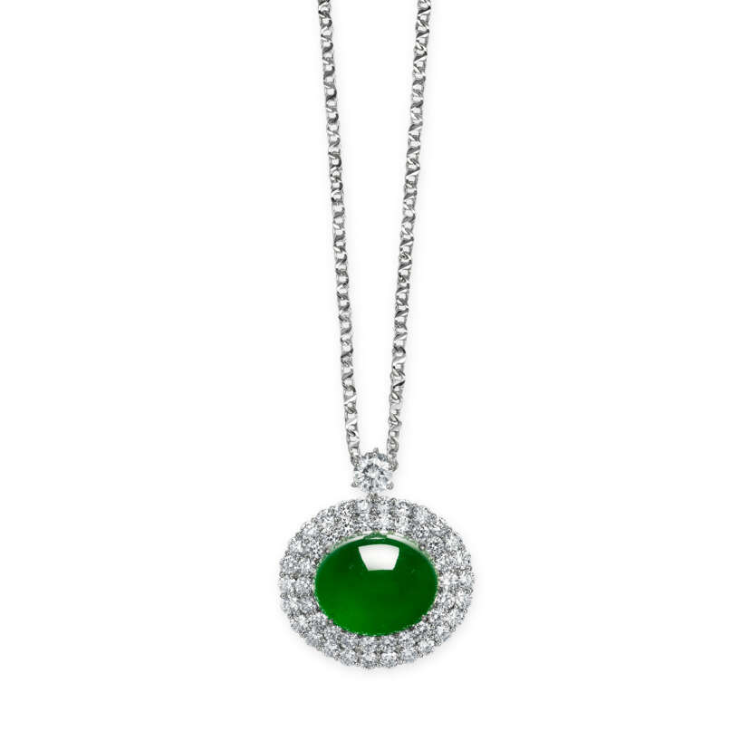 JADEITE AND DIAMOND PENDENT NECKLACE
