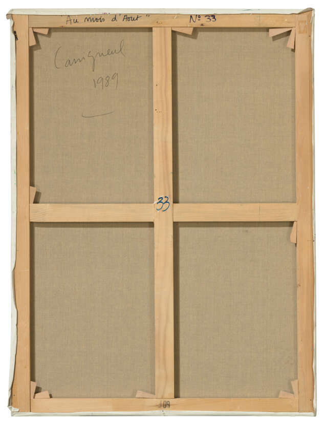 signed and dated 'CASSIGNEUL 89' (lower left); signed and dated again 'Cassigneul 1989' (on the reverse) and titled '"Au mois d'Aout'" (on the stretcher)