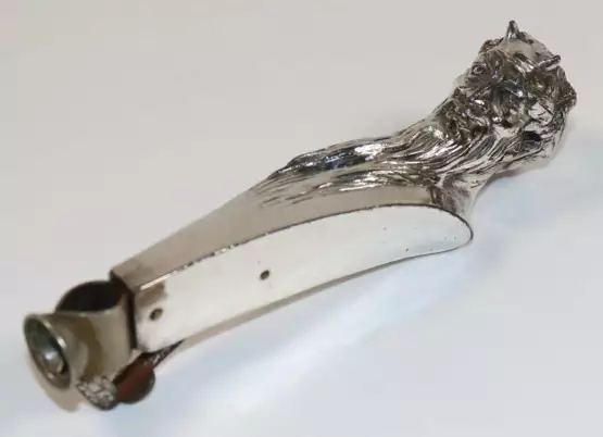 Mit dem Portrait eines Fauns. Verso mit 17 gemarkt. Wohl WMF um 1900-10. L: 13,5 cm
