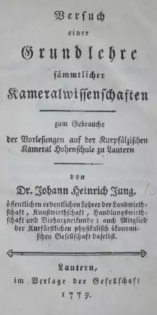 Humpert 811. Erste Ausgabe, sehr selten. - Kurzgefasstes, prägnantes Lehrbuch, konzipiert fur "Vorlesungen an der Kurpfälzischen Kameral Hohenschule zu Lautern". - Anfangs leicht knickspurig, Besitzverm. a.V. Ex. der Bibliotheca Tiliana mit St. verso T. u. le. Bl. - Exlibris.