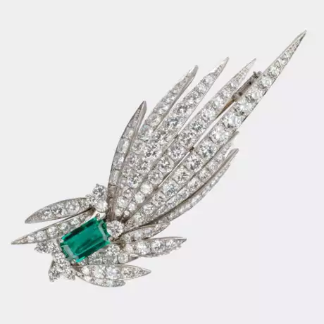 Lot 56 | Juwelier Wilm. Exzellente Vintage Smaragd Diamant Blüten-Brosche.