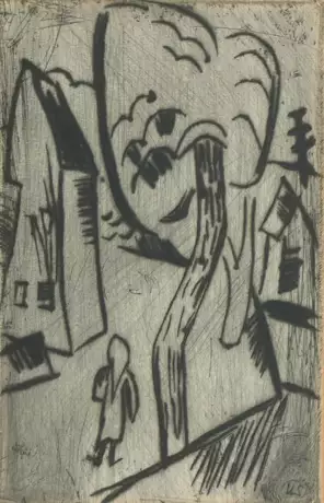 Strasse in Rottluff. 1921. Radierung. Unten rechts im Druck monogrammiert. Unten rechts in Bleistift signiert. Unten links in Bleistift bezeichnet: "ZiiSt". Plattengrösse 17,1x11,1 cm. Blattgrösse 27x21 cm. Gerahmt.