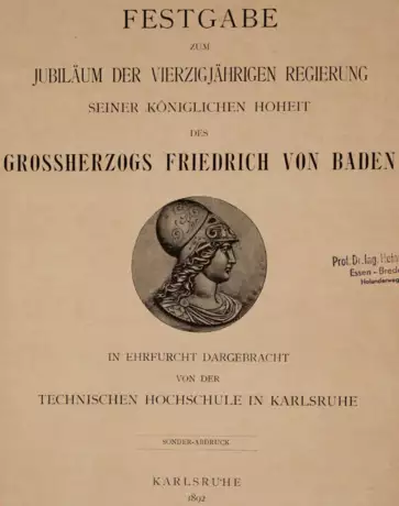 ╔Enthält:╗ Technische Hochschule Karlsruhe. Festgabe zum Jubiläum ... Friedrich von Baden. Sonderabdruck 1892. - Fridericiana, Feier ... Bericht über das Studienjahr 1911/1912. - Ebd. Festschrift TH 1825/1925. - Roller,O.K. Die Einwohnerschaft der Stadt Durlach im 18. Jh., 1907. - Fecht,K.G. Geschichte der Stadt Durlach (1869), Sonderdruck 1969. Doppelt vorhanden (davon 1x als Dünndruckausg.). - Durlacher Fayencen 1723-1847, Katalog Badisches Landesmuseum 1975. - Eberle,F. u.a. Unsere alte Markgrafenstadt Durlach mit ihrem Turmberg, 1951. - Erinnerungschronik ASV Fußball-Treff... 1945-1956 (1986). - Hauck,O. Staatliche Landwirtschaftsschule Augustenberg und Gutswirtschaft 1864-1939. Widm.-Bl. mit Fehlst. (Zensur). - Noe,A. 90 Jahre Landwirtschaftsschule Augustenberg 1864-1954.