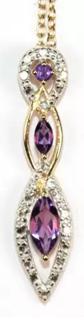 Lot 931 | Kette mit Anhänger, Länge ca. 2,9 cm, 925er Silber, vergoldet, Amethyste und ein kleiner Diamant, Kettenlänge ca. 46 cm