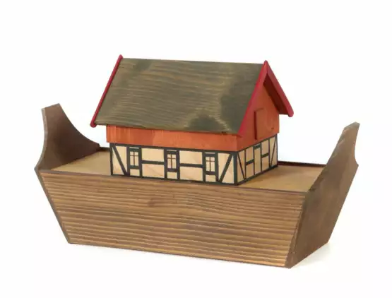 Lot 219 | kl. Arche-Noah Dregeno/Seiffen, neuzeitlich, kl. Fachwerkhaus auf Schi…
