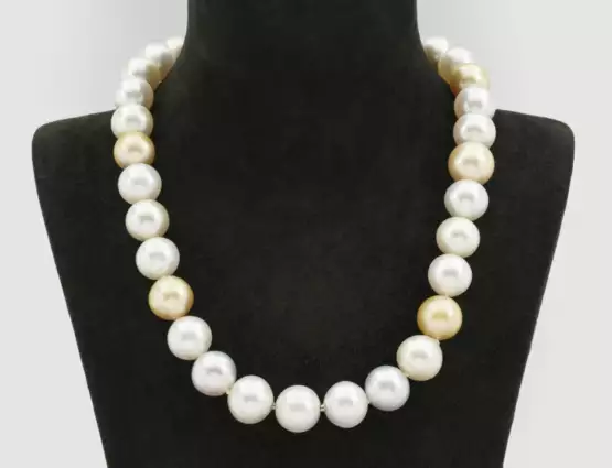 Necklace set with white, cream and golden South Sea pearls approx. 14 mm.