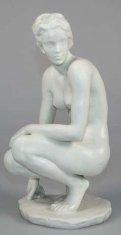 Lot 534 | Klimsch, Fritz (1870 Frankfurt/Main-1960 Freiburg/Breisgau) "Hockende", Biskuitporzellan, Rosenthal, auf Sockel sign., H. 31 cm