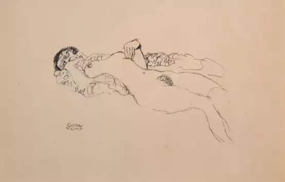 Lot 298 | Klimt, Gustav (1862 Baumgarten-1918 Wien) "Aktstudie", Heliogravure, in der Platte sign., 19x29 cm, im Passepartout hinter Glas und Rahmen