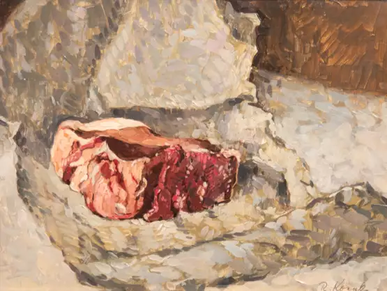Koepke, Robert (1893 Bremen-1968 St. Jürgen/Worpswede) "Schinken", Öl/ Platte, sign. u.r., WVZ-Nr. 59, 22x27,5 cm, Rahmen (tätig u.a. in Worpswede und in der Künstlerkolonie Schwalenberg (Lippe), Lit. Vollmer 3…