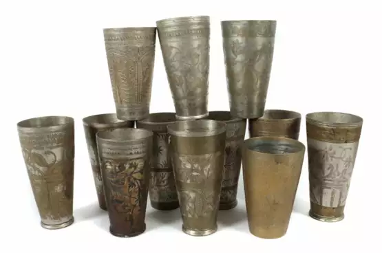 Lot 2600 | Konvolut 12 Lassi Becher Indien, 19./20. Jh., Messing, verzinnt, alle …