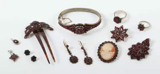 Lot 1408 | Konvolut Granatschmuck 20 Jhr., mehrere Teile Granatschmuck, Silber, D…