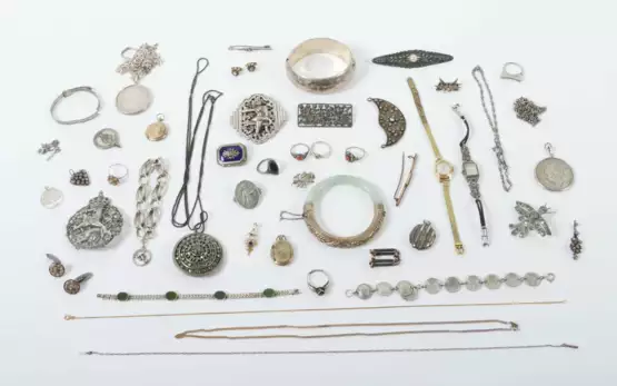 Lot 1395 | Konvolut Schmuck 20. Jhr., verschiedene Teile Schmuck und Uhren, Silbe…