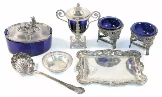 Lot 2867 | Konvolut Silber/Blauglas (7 Teile).