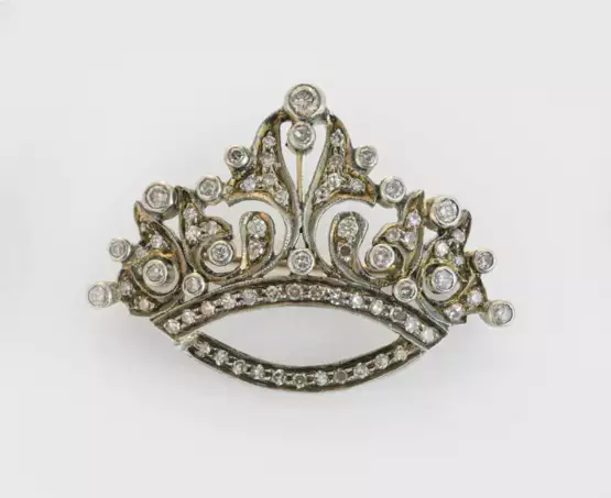 Brooch set with diamonds approx. 1.30 ct., in 14 k red gold and silver.