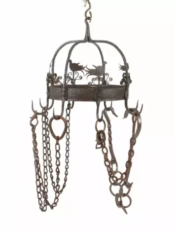 Lot 562 | Küchen-/Speckkrone 19. Jh., Schmiedeeisen, an einer Gliederkette hänge…