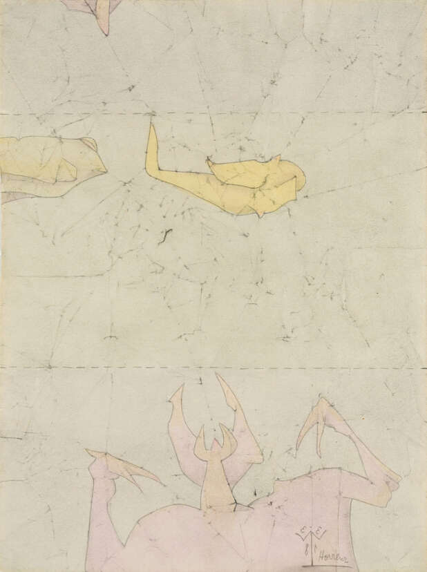 media on creased laid paper. 39,5 x 29,5cm. Monogrammed, dated and titled lower centre: LN