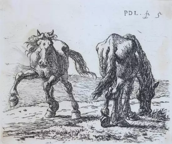 B. 9-14. Andresen 9-14. - 3 Radierungen leicht braunfleckig. - Horses. 6 etchings. Signed u. numbered in the plate. 3 etchings slightly stained.