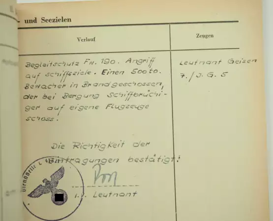 Lot 614 | Leistungsbuch eines Leutnant des Jagdgeschwader 5 - 7 Abschüsse.