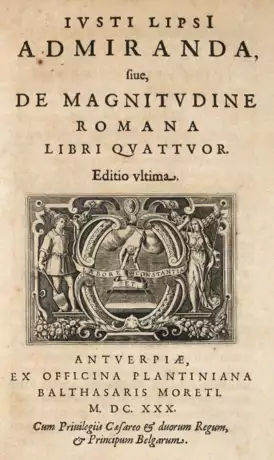 Letzte Plantin-Ausgabe (EA 1598) des gefeierten Werks über die Größe und Macht des Römischen Reichs; aus der Feder des bedeutendsten niederländischen Humanisten der zweiten Hälfte des 16. Jh. - Gebräunt, Vors. erneuert.