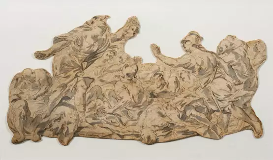 Attributed to Luca Giordano (1634 - 1705). Pen and ink wash on paper. Inscribed or signed "Luca Giordano". Minor light toning and stains.
