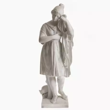 Carrara marble. Signed H. Berges, dated fec. 1833 on the tree stump at the back. Minor damage. Height 60.5, plinth 16 x 16 cm cm.