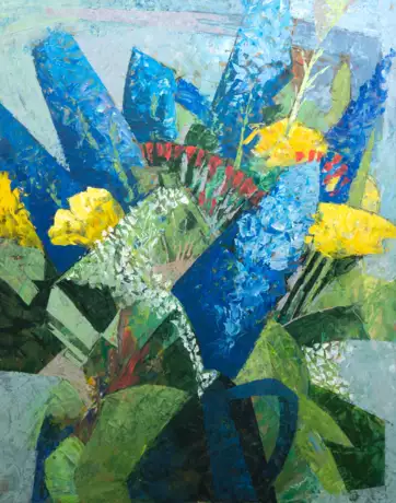 Lot 67 | Malchow, Herbert (1942-2015) "Rittersporn", Öl/ Platte, unsign., direkt beim Künstler erworben, 115,5x89 cm, Rahmen (H. Malchow war Landschaftsmaler und Grafiker, Studium an der FHS Heiligendamm und auf Burg Gi…