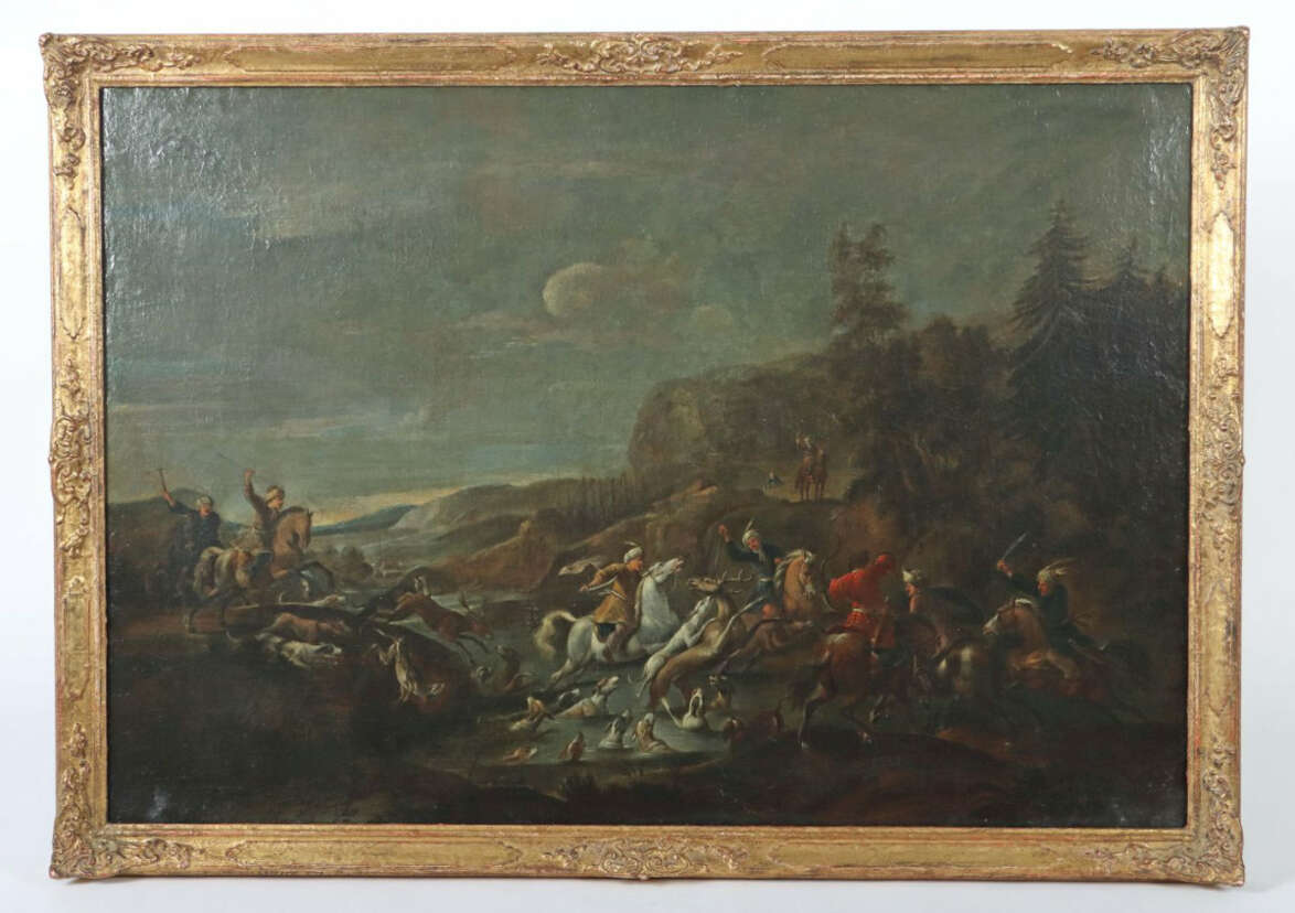 Lot 1890 | Maler des 18./19. Jh. ''Orientalische Jagdszene'', Darstellung einer H…