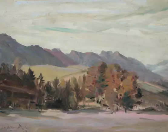 Lot 2216 | Maler des 20. Jh. ''Berglandschaft im Morgenrot'', Blick auf eine berg…